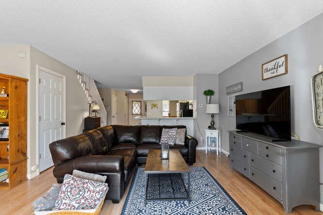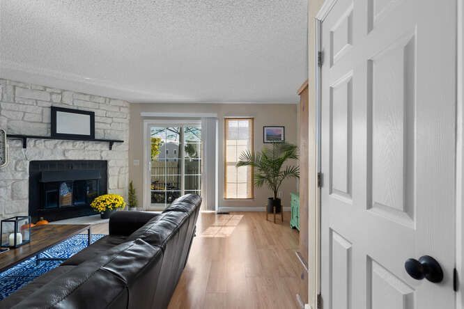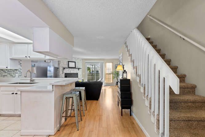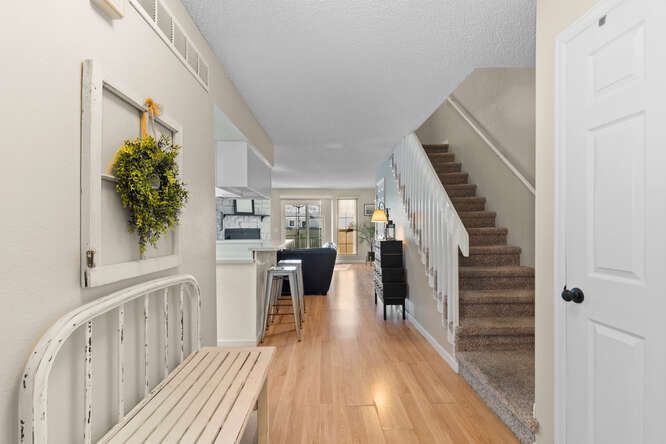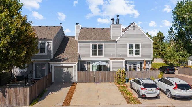 This convenient Parker townhome is all about location! In the quaint Town and Country neighborhood, this 2 bedroom/3 bath townhome is within walking distance to Parker’s Mainstreet! Numerous recent updates including a new water heater, new upper level windows and a new sliding glass door in the family room. The kitchen and bathrooms all have newer countertops, undermount sinks and faucets. In the bright kitchen you’ll find a newer dishwasher, dedicated dining space, countertop seating, ample cabinet space plus a pantry. Entry and family room flooring on the main level has been replaced and the stone fireplace recently painted. A convenient half-bath near the entry is easily accessible from the main living and kitchen spaces. Upper level features two sizable bedrooms and two full bathrooms. Each bedroom showcases large windows, a ceiling fan and ample closet space. Convenient upper level laundry is accessible from the hallway. Glass doors open to an outdoor patio. Two reserved outdoor parking spots are also included. HOA includes a community pool, exterior maintenance, roof care, snow removal, and trash/recycling services. Located just 25 miles southeast of Denver.