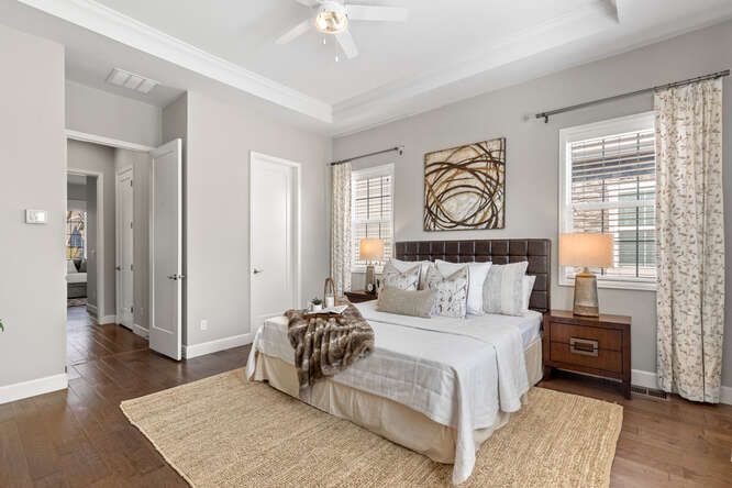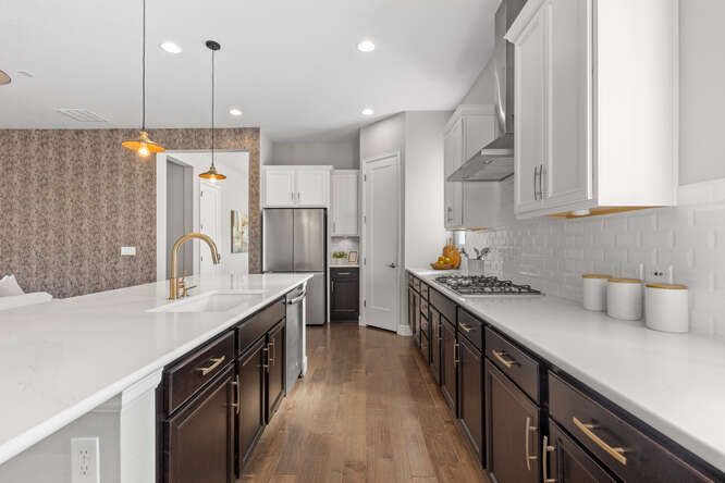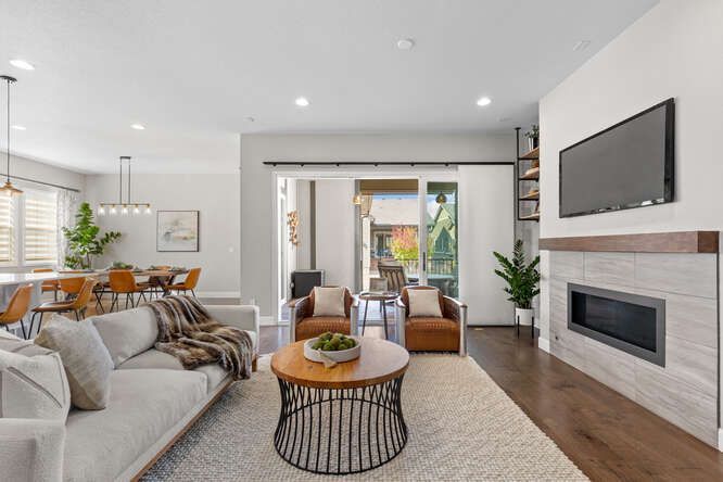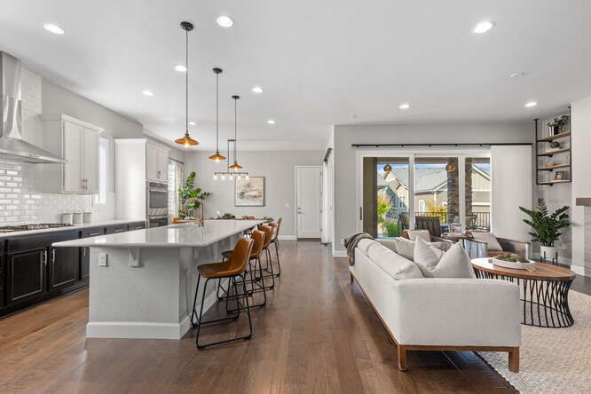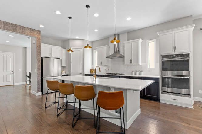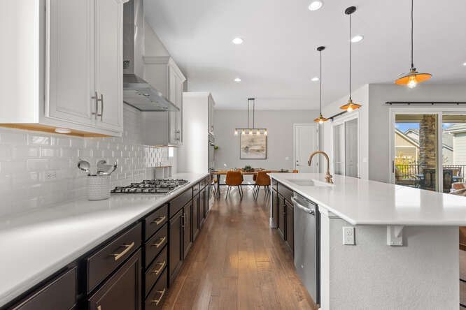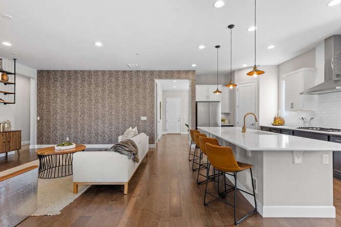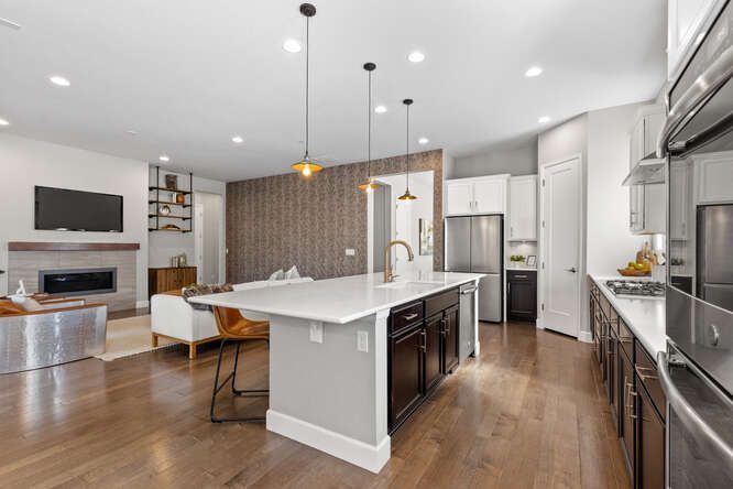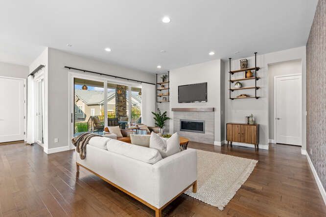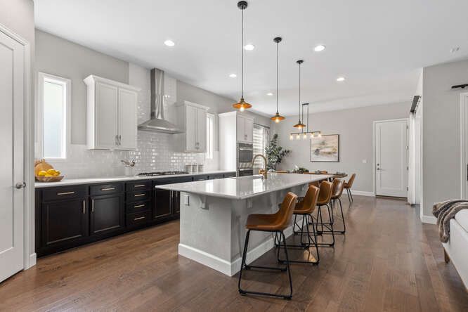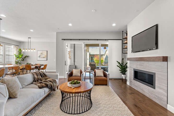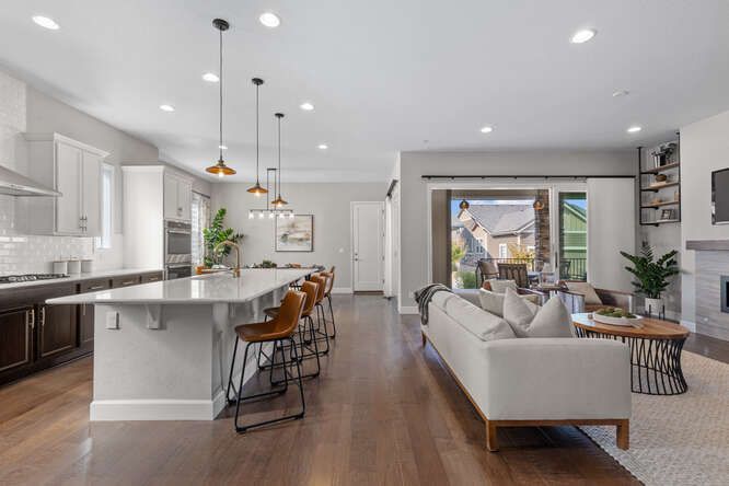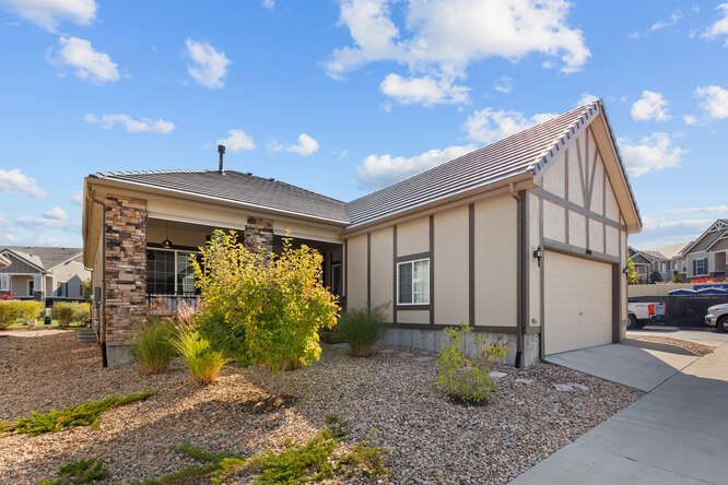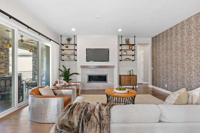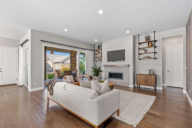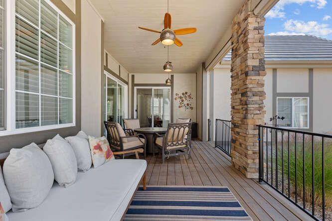 Enjoy a Backcountry lifestyle coupled with a low-maintenance, 4 bedroom, 3 bathroom, ranch style patio home. The open concept Grady floor plan, by Richmond American Homes, boasts a gourmet kitchen with a walk-in pantry, quartz countertops, expansive 12’ center island, generous dining area and adjacent great room with fireplace. A three-panel double glass slider door expands to a comfortable covered patio with dedicated gas line. A luxurious main floor primary suite with coffered ceiling, features a built-in workspace, updated bathroom with dual sinks, oversized glass enclosed walk-in shower and two custom walk-in closets. A second main level bedroom has a private full bathroom.