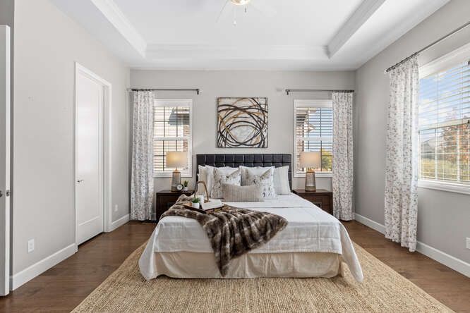 A sizable laundry room is on the main level, along with a powder room for guests, mud room and large coat closet just off the garage entrance.