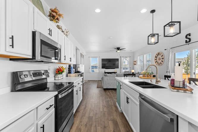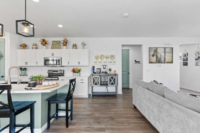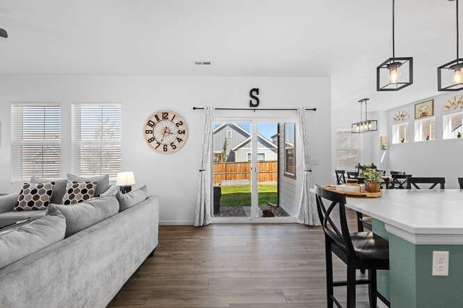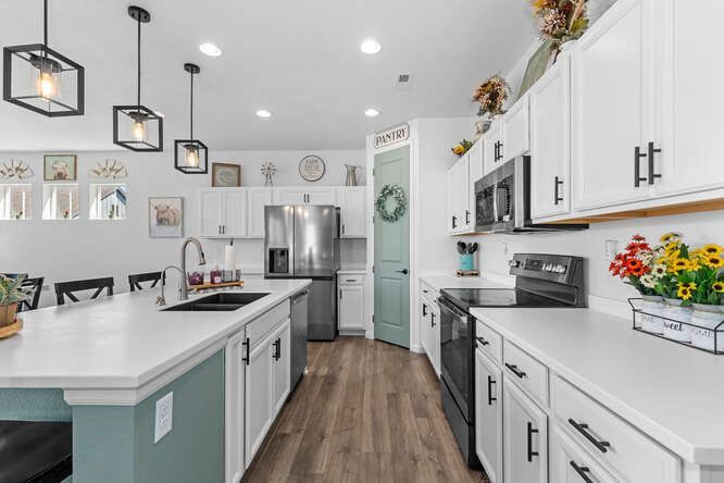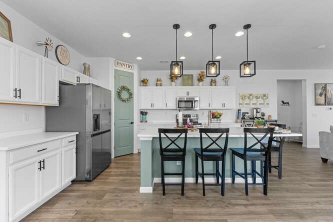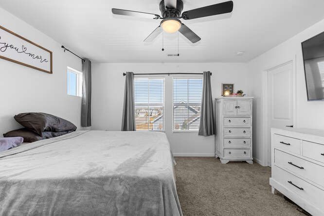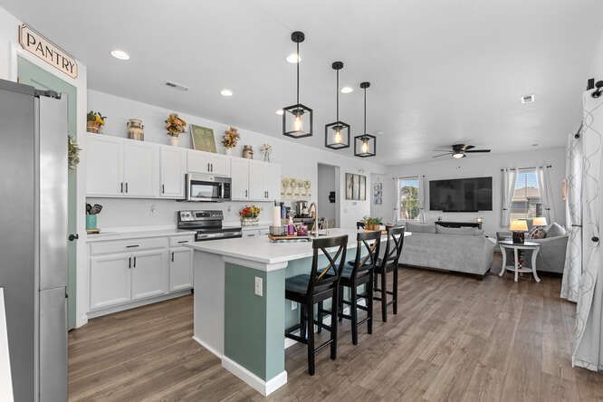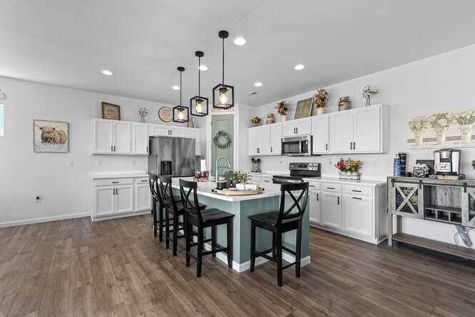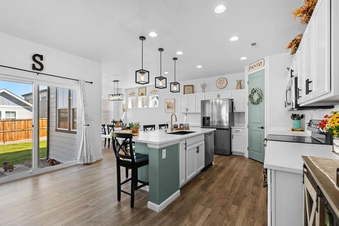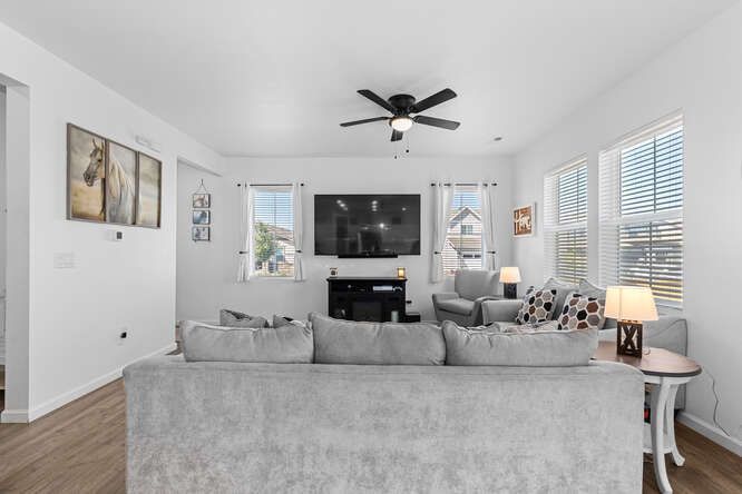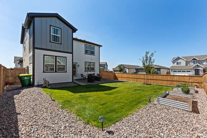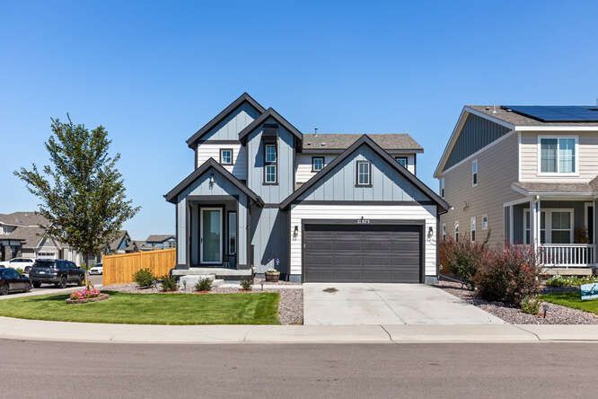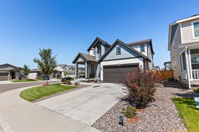 Discover this stunning 3-bedroom, 3-bathroom Taylor Morrison home in the desirable Sky Ranch community. This spacious residence offers an inviting open floor plan with luxury vinyl flooring throughout. The gourmet kitchen features an extended island, a spacious pantry, and ample cabinetry, perfect for entertaining or daily family gatherings. Enjoy the convenience of an upstairs laundry room and a luxurious 5-piece primary bath that offers a private oasis for relaxation. Situated on a large corner lot, this home offers both privacy and ample outdoor space. Ideally located with easy access to I-70, E-470, Denver International Airport, and downtown Denver, this home combines comfort, convenience, and style. Don’t miss the chance to make this beautiful home yours!