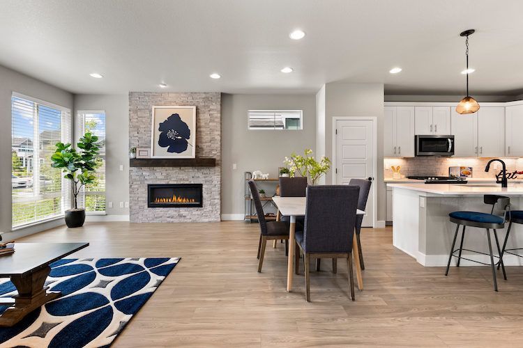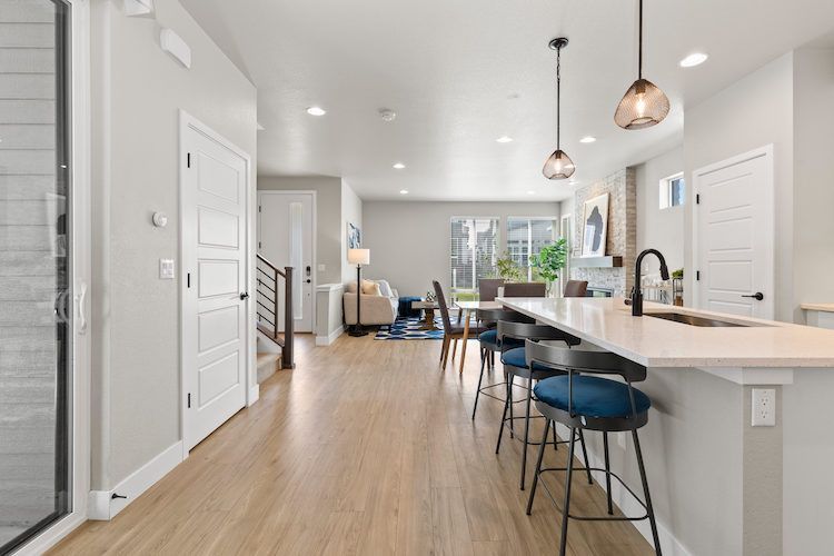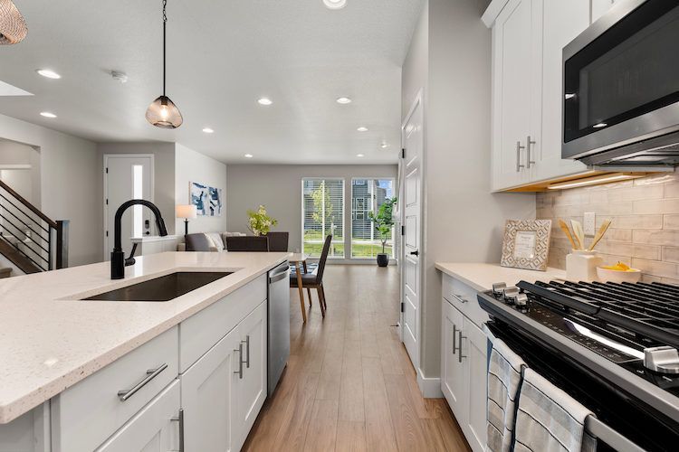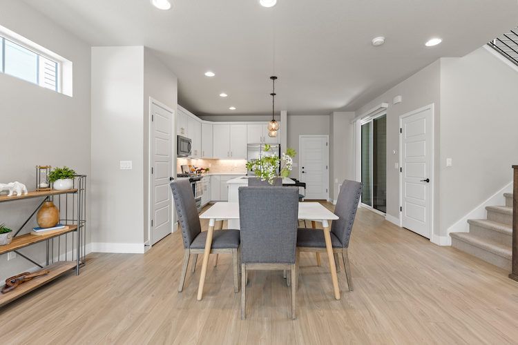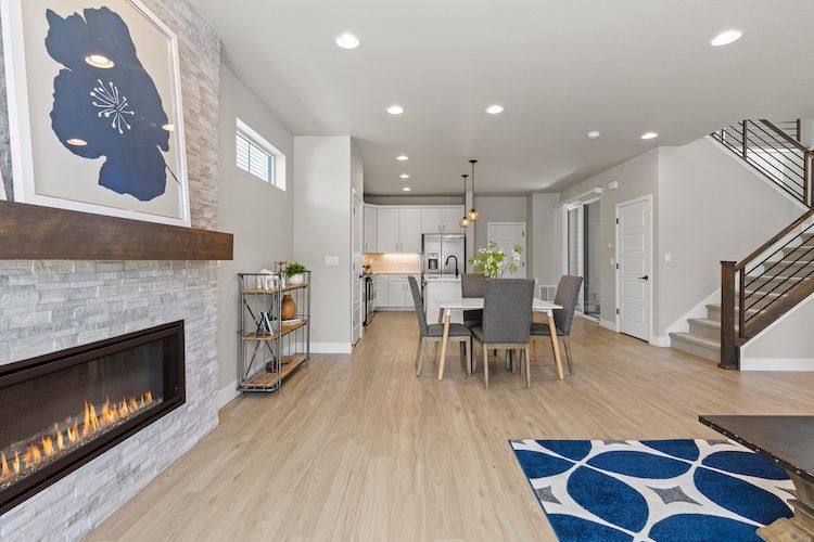Welcome to this stunning 4-bedroom, 4-bathroom home with a loft in the desirable Canyons neighborhood of Castle Pines. The main level features wide plank luxury vinyl floors, creating a seamless flow throughout the open living spaces. The kitchen is a chef’s delight with stainless steel appliances, a large island, undermount lighting, and a pantry that flows effortlessly into the family room, anchored by a cozy stacked stone fireplace perfect for chilly evenings. Upstairs, you'll find a versatile loft, three bedrooms, and a laundry room. The primary bedroom includes a spacious walk-in closet, while one of the additional bedrooms, adorned with French barn doors, can easily serve as an office. The finished basement provides extra living space with a family room, a bedroom, and a 3/4 bathroom. Step outside to the covered patio and enjoy the low-maintenance turf yard, which stays green year-round without the hassle, and benefit from the HOA's snow shoveling service, ensuring easy, breezy living throughout the winter months. The community amenities include the Exchange Coffee House, numerous parks and trails for outdoor activities and relaxation, and a community pool, perfect for hot summer days. Don’t miss the opportunity to make this spectacular home yours. Schedule a showing today and experience the best of Castle Pines living!