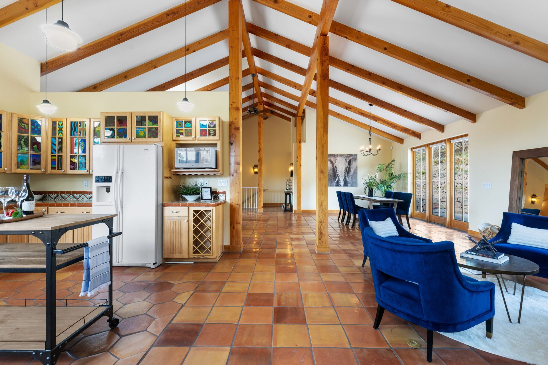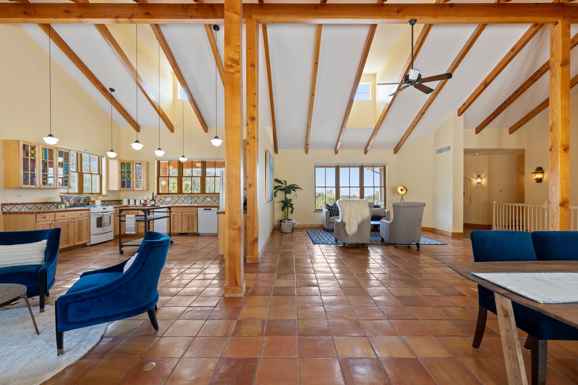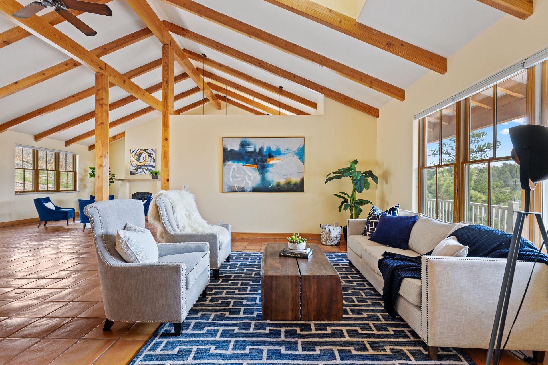 As you step inside, you'll be greeted by an open floor plan featuring a living room, dining room, hearth room, and large kitchen. The living area boasts a cozy fireplace, hand-troweled walls, wood beams throughout, Mexican tile flooring, and a Southwest flare. Outside, you'll find a gated driveway leading to a 2-car oversized detached garage with a large room above, perfect for a workout room or studio. Enjoy the outdoors with a composite deck, a front porch with a swing boasting breathtaking views of Pikes Peak, and an area for a hot tub with a hot tub outlet. This property also comes with the additional perks of no HOA and abundant wildlife, from deer to turkeys to soaring hawks. The large basement has the perfect recreation room and a large storage area. Embrace the Colorado lifestyle with this rare find in the Happy Canyon neighborhood. Don't miss the opportunity to call this private retreat your home sweet home. Schedule your showing today!