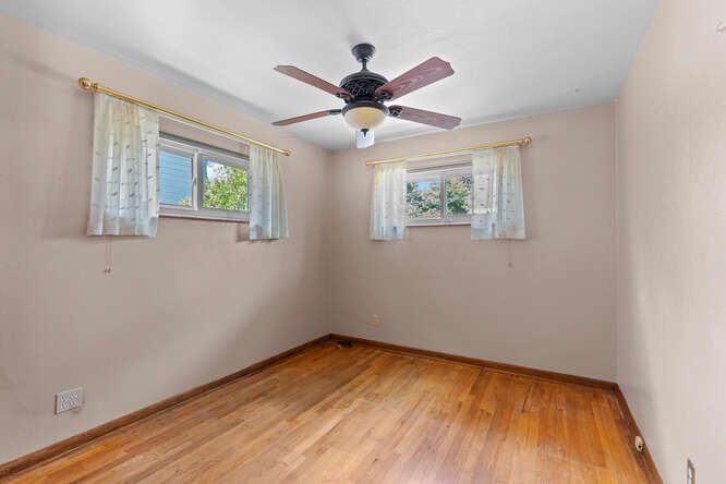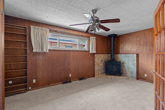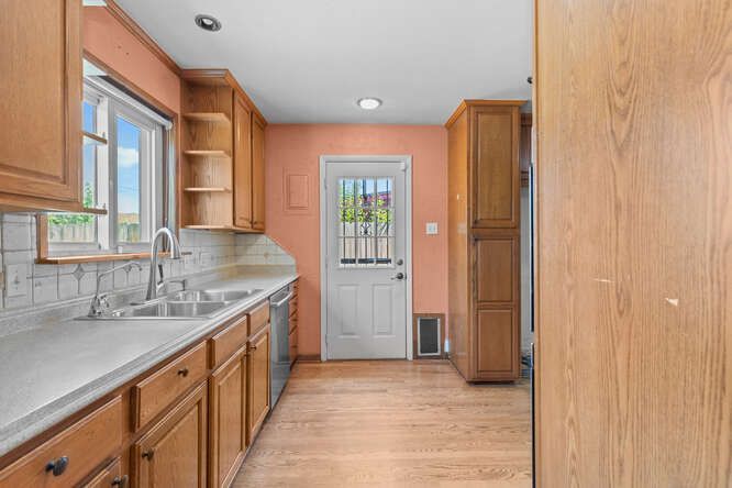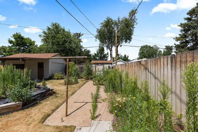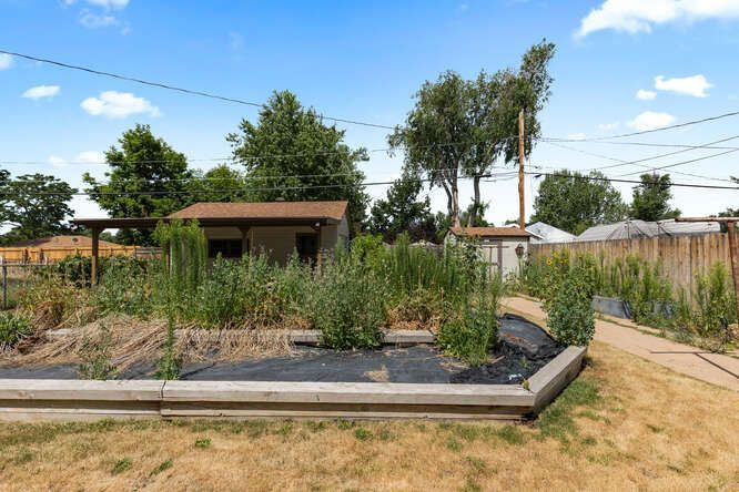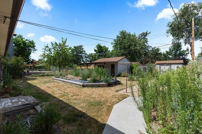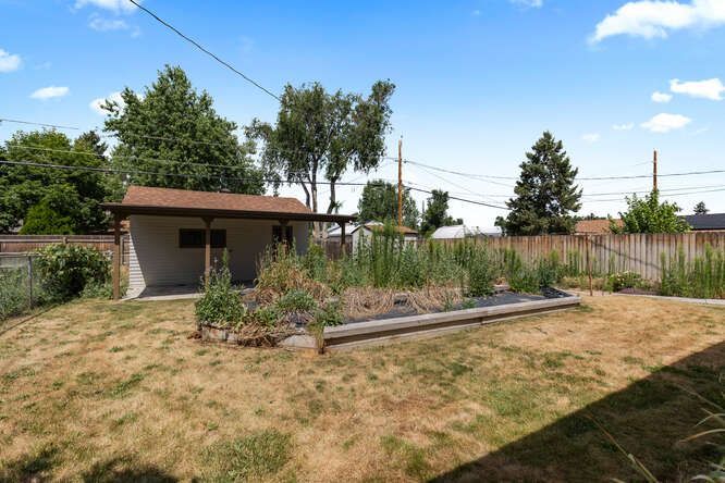 The kitchen area extends to the outdoors, where a large, private backyard creates an ideal setting for relaxation and entertaining. Endless potential in this sizable, fenced yard that includes raised garden beds, ample lawn space and a storage shed.