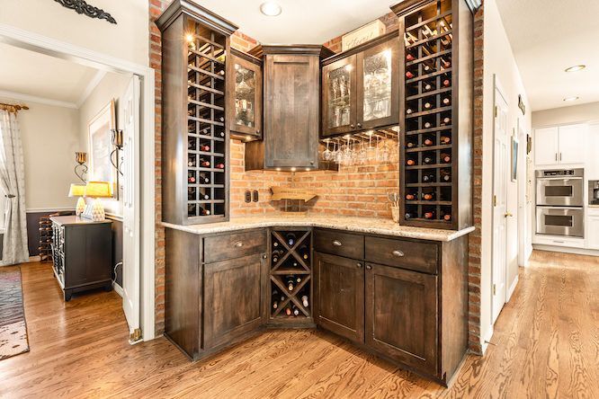 As you step inside, you’ll be greeted by an inviting atmosphere, highlighted by the seamless flow between the kitchen and dining room, living room, cozy family room and a sophisticated study with a double sided fireplace. The well-appointed wine bar with storage is a wine enthusiast’s dream, providing the perfect spot to unwind and entertain guests. The updated kitchen is a chef’s delight, featuring modern appliances, sleek countertops, and ample storage space.