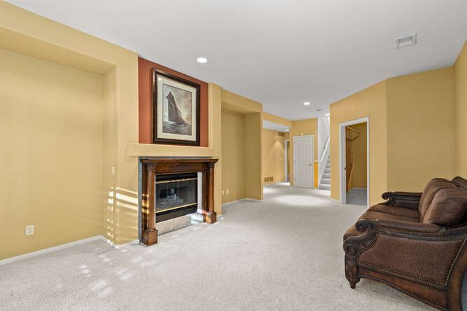 The open staircase takes you down to the finished lower level walk-out, complete with a versatile and open family room that includes a gas fireplace and glass sliding doors that expand to a cover patio. Two additional bedrooms, each with ample closet space, plus a full bathroom and additional storage space round out the lower level.