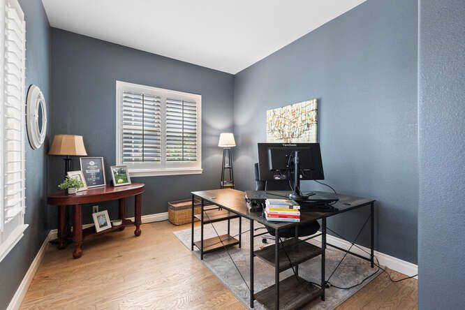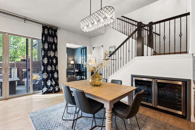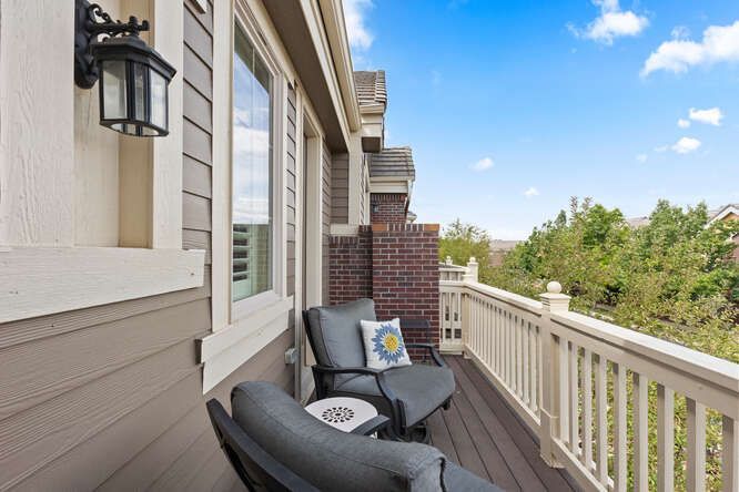 Welcome to this beautifully upgraded, end-unit, townhouse in the highly sought-after Ridgegate community of Lincoln Park. Elegance, comfort, and convenience come together in this sun-drenched home, thoughtfully enhanced with high-end finishes and stylish updates throughout. Step inside to find refinished hardwood floors, fresh interior paint, and designer light fixtures that set a warm, sophisticated tone. The main level flows seamlessly with an open-concept layout, cozy family room with fireplace and a gourmet kitchen featuring a gas range with hood, high-end appliances, a granite island, pantry, breakfast nook and a beverage coolers — perfect for entertaining. French doors lead to a dedicated den or office, ideal for remote work. Enjoy year-round indoor/outdoor living with a charming courtyard accessed directly from the kitchen. Upstairs, a spacious loft area offers flexibility for a second office, playroom, or media space. The luxurious primary suite is a true retreat, complete with a cozy fireplace, private balcony, custom walk-in closet system, and a spa-like 5-piece bath. Two additional bedrooms each feature ensuite bathrooms and sizable closets. Additional highlights include: New stair railings, custom window treatments & plantation shutters, upstairs hardwood flooring, included washer & dryer, convenient upper-level laundry and a spacious 3-car attached garage with storage. Live just moments from top-rated hospitals, upscale shopping, fine dining, and the Lone Tree Arts Center. Outdoor enthusiasts will love the quick access to the Bluffs Regional Park Trail, just a short walk away. This home is the perfect blend of style, function, and location.