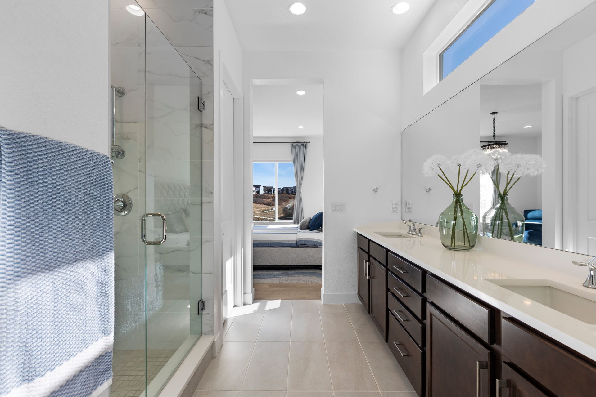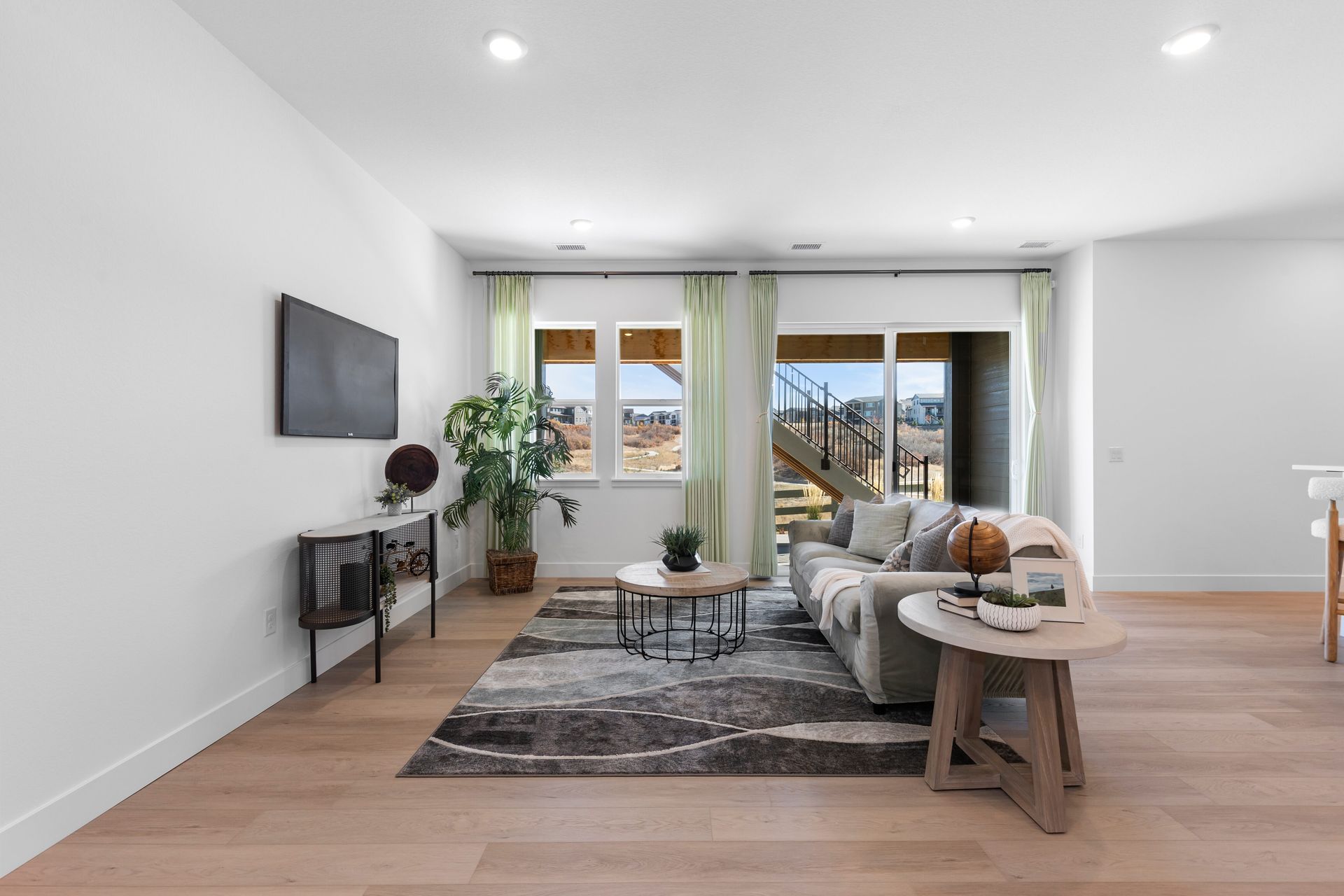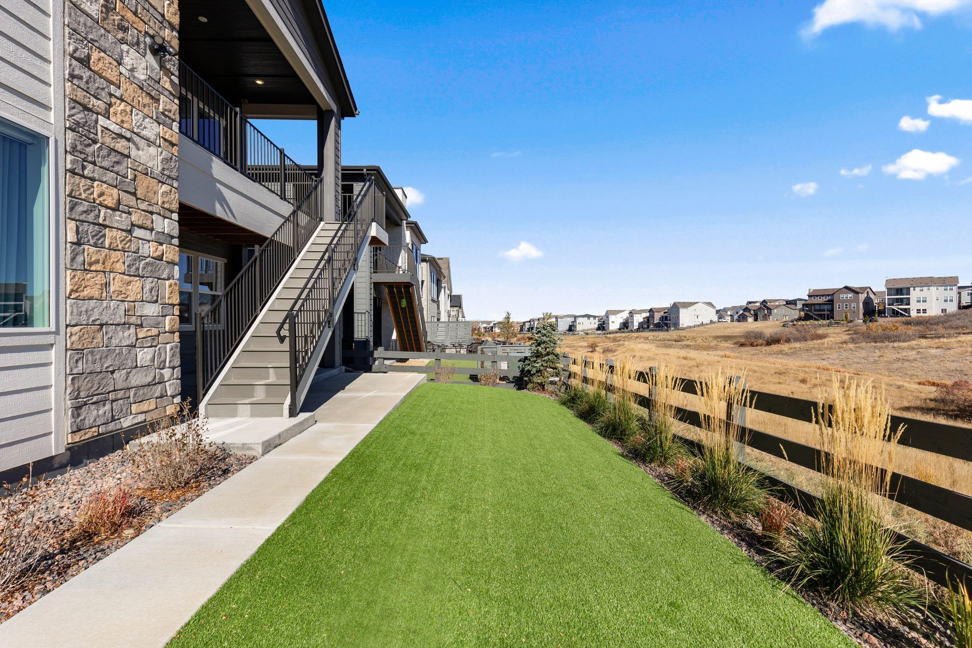 Welcome to this stunning, nearly new ranch by Shea Homes in The Canyons - where modern design meets the beauty of open space. With 4 bedrooms and 5 bathrooms, every detail of this home is crafted for effortless luxury and comfort. Inside, the open-concept main floor offers plenty of room to relax or entertain. The family room centers around a beautiful fireplace framed by large picture windows that fill the space with natural light and capture serene views of the open space beyond. Flowing seamlessly into the dining area and gourmet kitchen, this main living area is ideal for gatherings both large and small. The kitchen is a true showpiece - featuring sleek stainless steel appliances, quartz countertops, a large island with seating, a gas range with a designer hood, and abundant cabinetry for storage. A statement chandelier, custom window treatments, and an added guest suite create a welcoming flow of light and style. The versatile home office provides the perfect space for remote work or study. Each of the four bedrooms features its own private en suite bathroom, offering a rare combination of privacy and convenience for family and guests alike. The fully finished walk-out basement adds even more versatility, complete with a full wet bar and an additional en suite bedroom - perfect for guests, game nights, or a private retreat. Step outside to a backyard that backs directly to open space, offering peaceful views and a seamless connection to a scenic trail beyond the fence. The exterior is thoughtfully designed with an extended driveway, concrete side path, year-round green artificial turf, and a custom planter box. This Castle Pines gem combines modern luxury, smart design, and a rare open-space setting. With en suite bedrooms, a versatile home office, premium finishes, and a natural backdrop that feels miles from the city, it’s the perfect balance of elegance and ease. Experience fresh, elevated living in The Canyons!