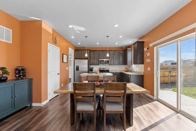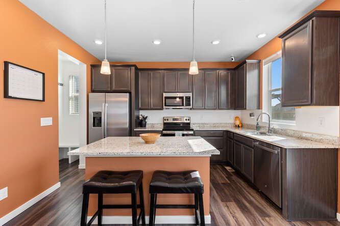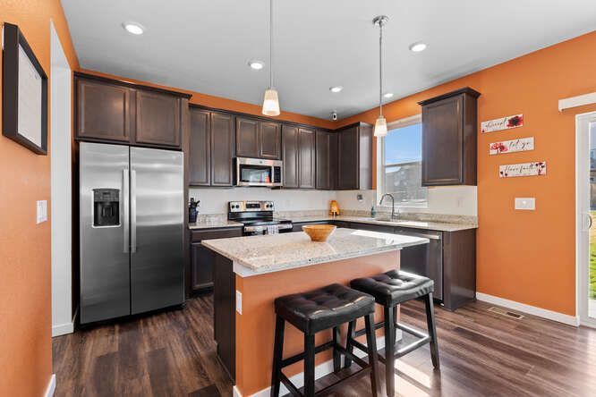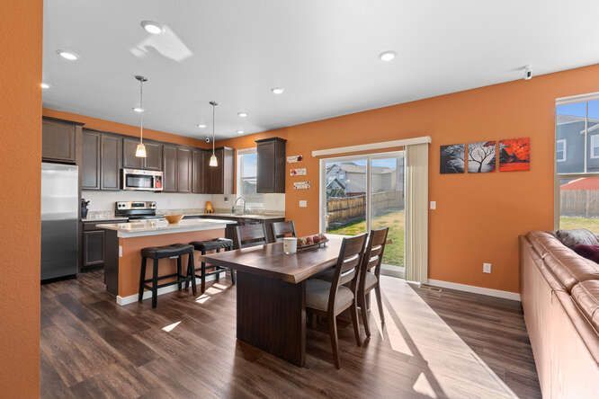 1004 Snowberry Avenue is located in the charming neighborhood of Gold Creek Valley. Built in 2021, this two-story home looks out to open space with walking trails. With an open concept floor plan, this home is highlighted by the spacious kitchen, dining and living area with luxury vinyl flooring and an abundance of natural light. Direct access to the backyard with patio provides easy indoor/outdoor living, making it perfect for entertaining and gatherings. The kitchen includes stainless steel appliances, sleek granite counter tops, a center island with counter seating, rich cabinetry and large pantry. The open and versatile dining and family room space has glass sliding doors and large picture windows that look out to the yard. Nearby is a well-appointed powder room and mudroom just off the garage entry. In the upper level, the primary suite features 9’ tray ceiling, ensuite bathroom with dual sinks, and a large walk-in closet. Two additional bedrooms are both versatile spaces with ample closet space. Both rooms are ideal for bedrooms, a home office or hobbies and share a full bathroom. A convenient laundry room rounds out the upper level. Additionally, the large crawl space (approx 850 sq ft with 5' ceilings) offers fantastic room for storage! Outdoors you’ll find a covered front porch that looks out to the adjacent open space. The fully fenced backyard includes a large concrete patio and large lawn area. This move-in-ready property is waiting for you to make it your own!